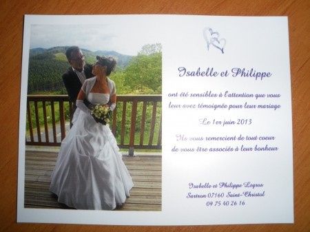 Le jour J passé dernier pas vers vos invités le carton de remerciement! qu'avez vous choisis? voici le notre! :