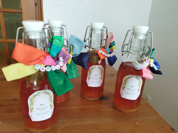 Depuis une année nous avons fait macéré un précieux jus de rhum arrangé . Le temps est venu de le mettre en bouteille et fioles ! C'est une tache que nous avons réalisé tous les deux les étiquettes reprennent le graphique de notre faire part afin...