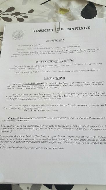 Voila ce matin j'ai ete retirer notre dossier de mariage plus qu'a le remplir