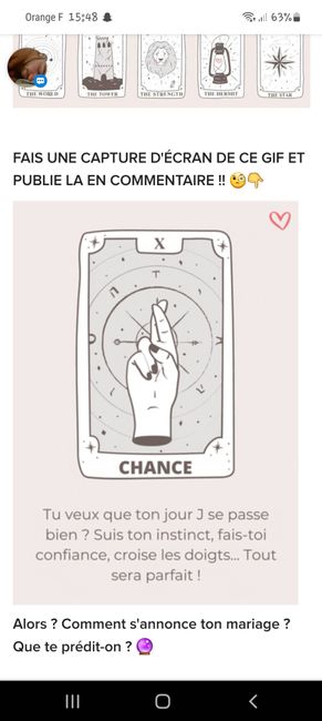 Coucou tout le monde 💜 Merci d'avoir participé jusqu'au bout ! Maintenant qu'on en sait un peu plus sur ton mariage, on va pouvoir tirer les cartes... FAIS UNE CAPTURE D'ÉCRAN DE CE GIF ET PUBLIE LA EN COMMENTAIRE !! 🧐👇 Alors ? Comment s'annonce ton...