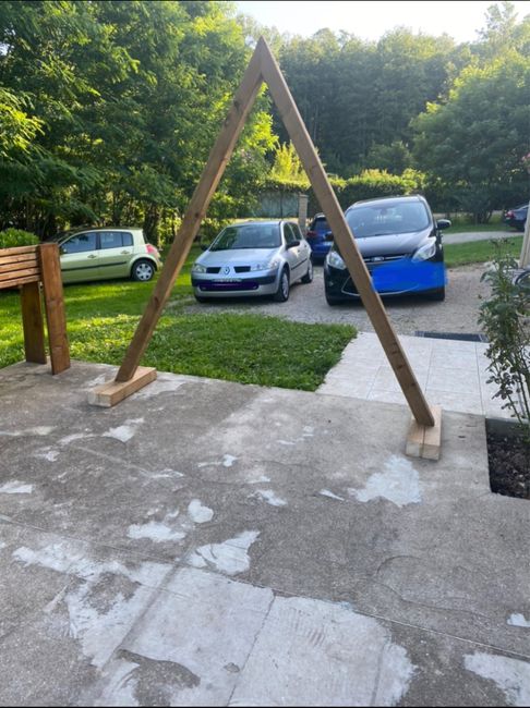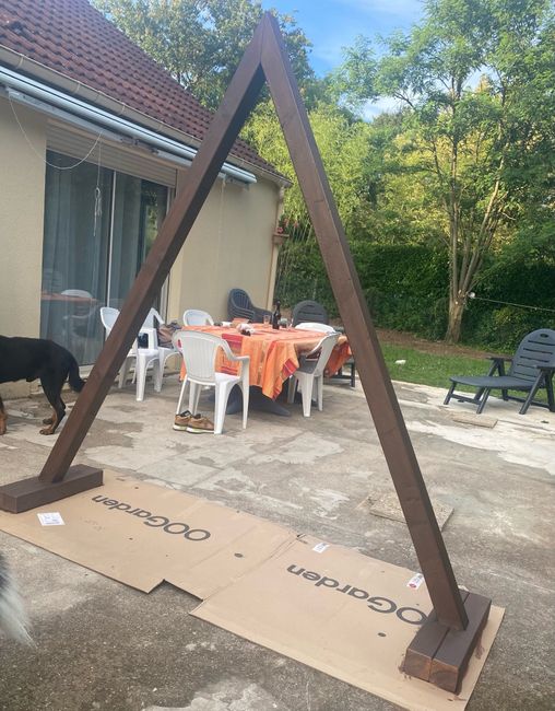 Hier nous avons construit notre arche nous avons plus qu’à lasurer et à la décoré de rideaux blanc et de lierre ! En haut on mettra peut être un bouquet de 7 épi de blé ! J’adore cette forme d’arche 😍 vous en avez prévu une ?