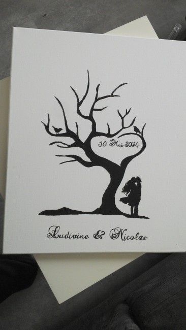 Coucou les filles! Voici une idée que j'ai trouvé pour garder un souvenir original de vos invités! on positionne l'arbre imprimé , les encreurs aux couleurs des mariés, un stylo...et des lingettes :-) Et en fin de soirée, voici un arbre avec les...