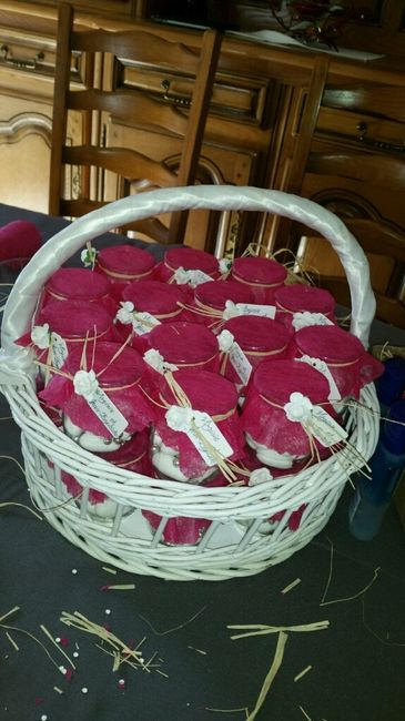 Coucou ce weekend nous avons enfin fait nos dragées cela est super après 5 h nous avons fini 80 pots de fait ... Nous sommes content