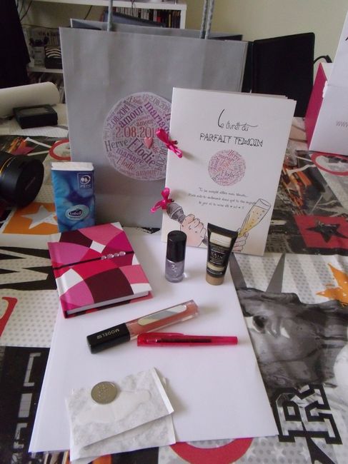 coucou avez vous pour vos témoin(s) préparer un " kit du parfait témoin " ? je trouve l'idée sympa et on peu en faire un avec peu de genre peu couteuse !! ^^