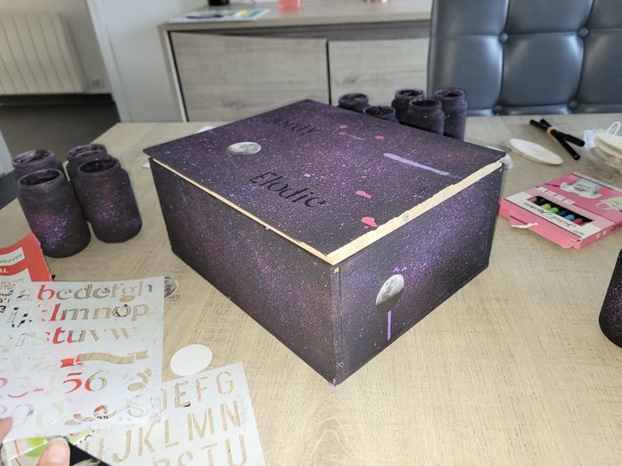 Bonjour les filles. Je suis en vacances donc j'ai avancé un petit peu dans la décoration. L'urne est terminée. Notre thème est Univers/ constellation. Vous en pensez quoi ? Merci d'avance