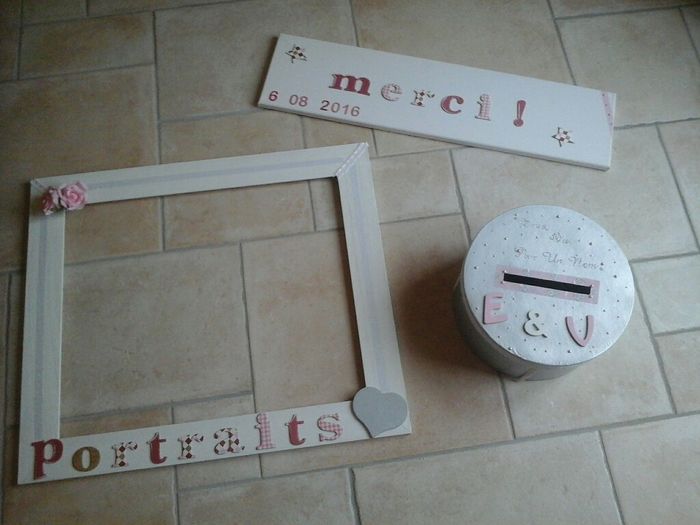 Mon urne (pour ceux et celles qui navaient pas vu mon précédent post) avec mon cadre photobooth et un tableau pour mettre avec l'urne sur la table pour remercier. Voilà vpus en pensez quoi?