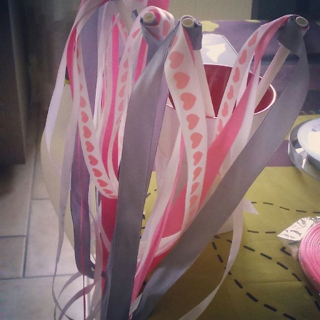 Aujourd'hui en regardant le match de la France sans chéri qui n'est pas encore rentré de son week-end voilà mon petit test : des rubans sur baguette. J'ai appris par ma coiffeuse que le lancer de pétales et de confettis est interdit dans ma ville, ce...