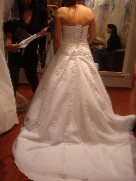 Bonjour à toutes !! Voilà je suis allée faire des essais et j'ai craqué sur celle-ci. Le truc c'est qu'au début je ne voulais pas de bustier parce que j'ai une poitrine plutôt généreuse et pas de laçage du coup j'ai quelques doutes. Quand pensez-vous...
