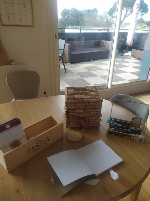 Bonjour, Qu'aller vous proposer à côté de votre livre d'or et de votre urne ? Des enveloppes et cartes pour ceux qui n'en auront pas prévues pour l'urne ? Des jolis stylos et du ruban adhésif pour le livre d'or ? Des fiches souvenirs à remplir par...