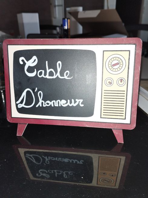 Bonjour Je continue ma déco personnalisée Petit aperçu du plan de tables. Avec ma petite main ✋ gauche !! Hé Thème rétro chic d'où l'écriture cursive.La branche est bien faite ?