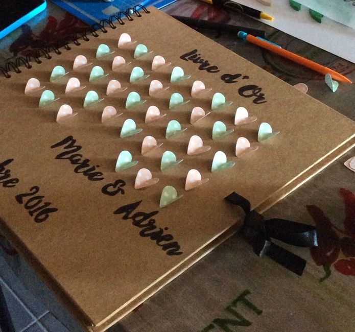 Bonjour à toutes! Voici mon livre d'or que je viens de terminer!! Cela m'a couté moins de 25 euros en tout et j'ai mis 2 petites heures à le confectionner ( le temps de la sieste à mon fils!) Le thème de mon mariage: champetre romantique. Qu'en...