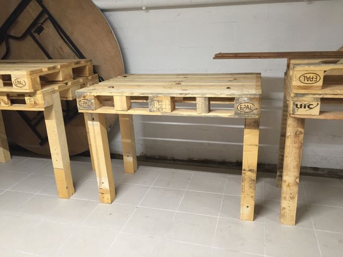 Coucou les futures mariées!Ce week end a été productif: nous avons fabriqué nos tables avec des palettes pour notre vin d'honneur! Très contente du resultat! Nous en avons fait 6 pour les mettre en extérieur pour que nos invités puisse poser leur...