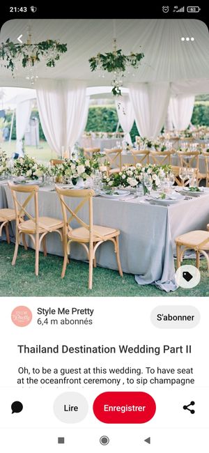 Hello les filles, notre mariage est prévu le 1er juillet 2023 j'ai du mal à me plonger dedans !! j'ai peur de changer d'avis 6 mois avant 😂😂 Vous avez déjà commencé à acheter vos décorations ??