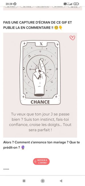 Coucou tout le monde 💜 Merci d'avoir participé jusqu'au bout ! Maintenant qu'on en sait un peu plus sur ton mariage, on va pouvoir tirer les cartes... FAIS UNE CAPTURE D'ÉCRAN DE CE GIF ET PUBLIE LA EN COMMENTAIRE !! 🧐👇 Alors ? Comment s'annonce ton...