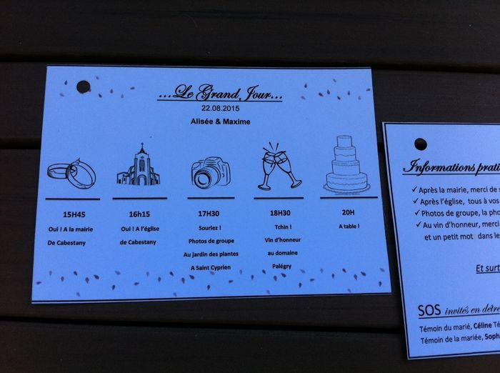 Coucou les filles. Je voulais partager mon planning previsionnel du jour J avec vous façon timeline fait tout simplement sur powerpoint (Merci pour l'idée *o2*). Je vais le mettre sur mon blog et je le mettrais également dans les sacs de bienvenue le...