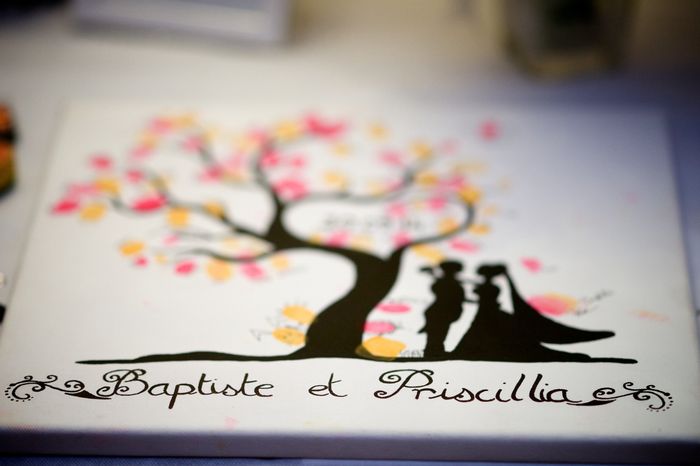 Coucou les filles! Voici une idée que j'ai trouvé pour garder un souvenir original de vos invités! on positionne l'arbre imprimé , les encreurs aux couleurs des mariés, un stylo...et des lingettes :-) Et en fin de soirée, voici un arbre avec les...