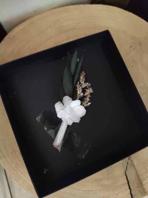 Coucou ! Aujourd'hui nous avons reçu mon bouquet ainsi que la boutonnière de Monsieur pour notre mariage civil le 16 avril 😊😊 trop fan 🥰