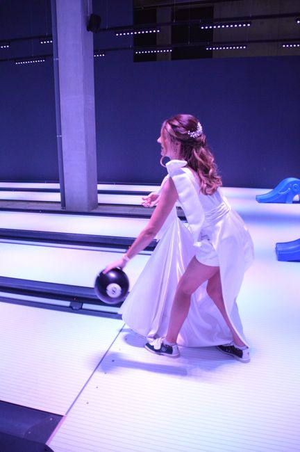 Coucou ! Pour celles qui n'ont pas d'idées pour occuper l'après midi après le mariage civil en attendant le resto vous pouvez oser le bowling et le trampoline c'était franchement drôle 🤣🤣🤣 j'adore ce côté fun et décalé 🤣 Bisous 😘😘😘