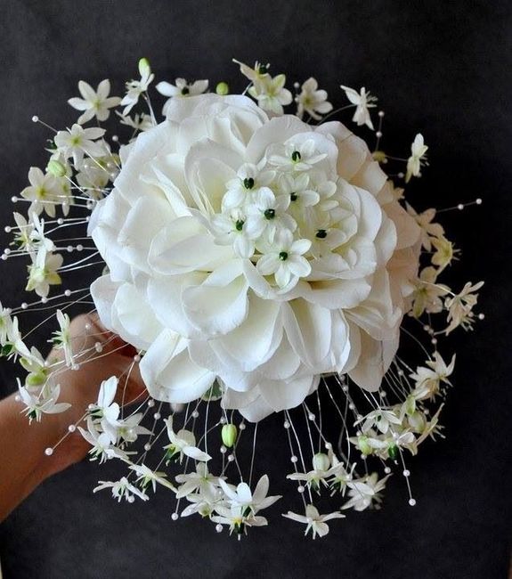 Voilà mon bouquet : - de la dentelle de ma robe sera mis sur le manche - des perles vont être rajoutées pour rappeler mon bustier Il me tarde !!!! Plus que 35 jours avant la jour J