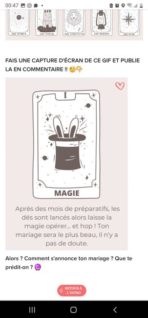 Coucou tout le monde 💜 Merci d'avoir participé jusqu'au bout ! Maintenant qu'on en sait un peu plus sur ton mariage, on va pouvoir tirer les cartes... FAIS UNE CAPTURE D'ÉCRAN DE CE GIF ET PUBLIE LA EN COMMENTAIRE !! 🧐👇 Alors ? Comment s'annonce ton...