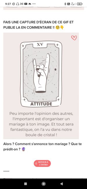 Coucou tout le monde 💜 Merci d'avoir participé jusqu'au bout ! Maintenant qu'on en sait un peu plus sur ton mariage, on va pouvoir tirer les cartes... FAIS UNE CAPTURE D'ÉCRAN DE CE GIF ET PUBLIE LA EN COMMENTAIRE !! 🧐👇 Alors ? Comment s'annonce ton...