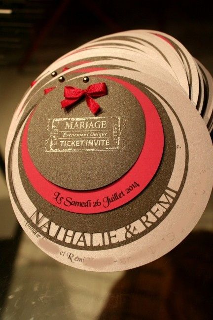 Voici le faire part que nous avons choisi avec exactement les couleurs de notre mariage le rouge l'argent et un touche de noir. Grace à l'aide de ma sœur qui est également mon témoin nous allons les faire nous même. Donc en ce moment nous sommes à la...