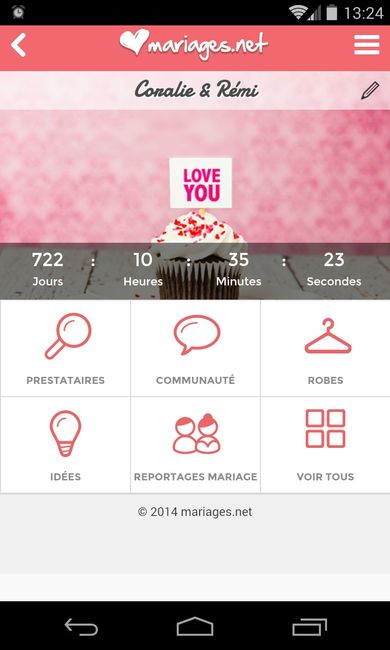 Bonjour à tous et à toutes, J'aimerais que vous partagiez ici avec nous votre date de mariage et une capture d'écran de votre compte à rebours sur app afin de vérifier s'il y a oui ou non 24h d'avance par rapport au compteur du site ? Merci