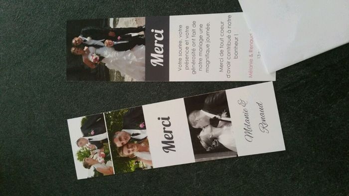 Voici nos remerciements marque page. Chéri voulait quelque chose qui puisse servir à certains. Car une carte classique sera rangée dans un tiroir pour la plupart dit il