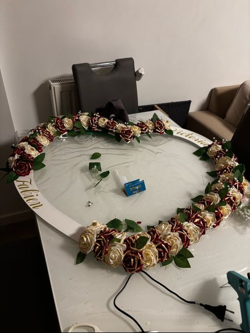 Coucou les FM 👋🏻 ´ Après des mois de boulot, le cadre photo est ENFIN terminé ! Je l’ai commencé en Mars. Il y a environ 94 roses en mousse où j’ai déposé manuellement des feuilles d’or dessus (environ 25 min par fleur pour la pose des feuilles d’or)...