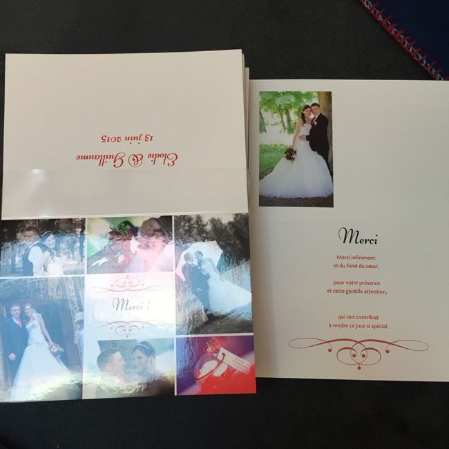 coucou les brides!! J'ouvre cette discussion car à 3 semaines après le mariage, nous commençons à réfléchir à nos cartes de remerciements.. Nous souhaitons y intégrer des photos du mariage (une ou deux) et une de notre vdn... Comment sont les vôtres?...