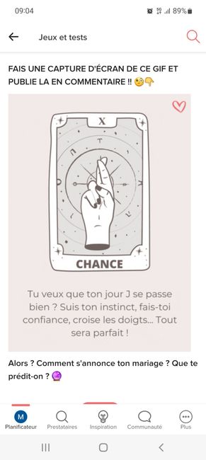 Coucou tout le monde 💜 Merci d'avoir participé jusqu'au bout ! Maintenant qu'on en sait un peu plus sur ton mariage, on va pouvoir tirer les cartes... FAIS UNE CAPTURE D'ÉCRAN DE CE GIF ET PUBLIE LA EN COMMENTAIRE !! 🧐👇 Alors ? Comment s'annonce ton...