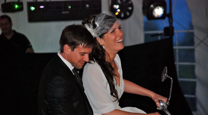 Nous avons chacun une mini moto et on adore faire un tour les week-end en montagne etc... Ça fait rire tout le monde! Fred et moi sommes entrés dans le chapiteau sur sa mini moto!!! C'était énorme! Sur " Harley Davidson" de Brigitte Bardot!