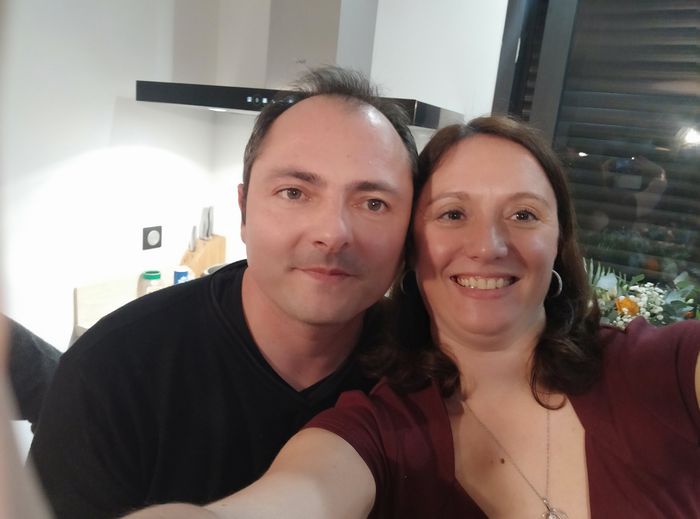 Voilà un selfie de nous 2 pris à Noël. Bientôt 15 ans qu'on partage nos vies. On s'est rencontré sur notre lieu de travail On est très fusionnel, on partage tout.