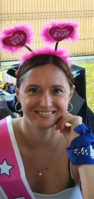 Coucou tout le monde. J ai eu l agréable surprise de faire mon EVJF hier. Les filles sont arrivées chez moi le matin avec les viennoiseries. Changement de tenue pour le dress code bleu et blanc. Nous voilà partie dans ma rue pour chanter et danser...