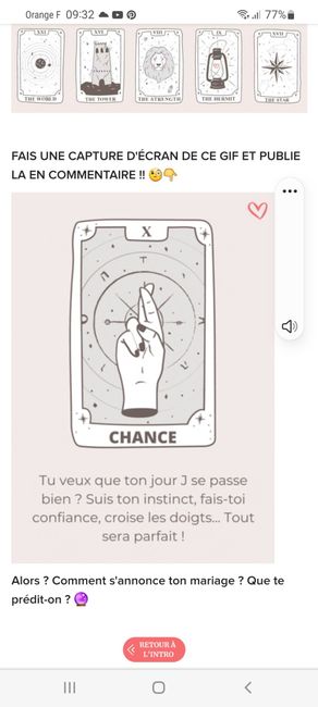 Coucou tout le monde 💜 Merci d'avoir participé jusqu'au bout ! Maintenant qu'on en sait un peu plus sur ton mariage, on va pouvoir tirer les cartes... FAIS UNE CAPTURE D'ÉCRAN DE CE GIF ET PUBLIE LA EN COMMENTAIRE !! 🧐👇 Alors ? Comment s'annonce ton...