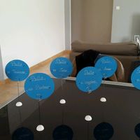 Il y a 3937 joursVoilà le début de mon plan de table pas fini encore, beaucoup de boulo on a percer à l aiguille et passer le fil de pêche pout faire tenir les boule en plexi et faire toute les étiquette avec une machine ( je c est plus le nom) sur papier transparent...