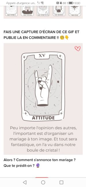 Coucou tout le monde 💜 Merci d'avoir participé jusqu'au bout ! Maintenant qu'on en sait un peu plus sur ton mariage, on va pouvoir tirer les cartes... FAIS UNE CAPTURE D'ÉCRAN DE CE GIF ET PUBLIE LA EN COMMENTAIRE !! 🧐👇 Alors ? Comment s'annonce ton...