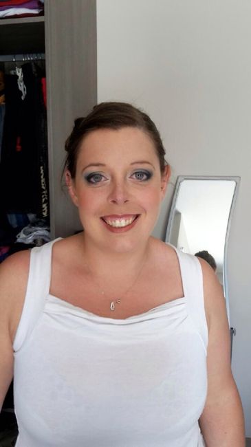 Samedi dernier j'ai eu un avant goût du mariage (coiffeuse, maquilleuse, essayage de robe). Qu'en pensez vous ? Je trouve que le maquillage met plutôt mes yeux en valeur, mais est-ce trop ? Il y a des petits cheveux qui traînent sur ma coiffure, elle...