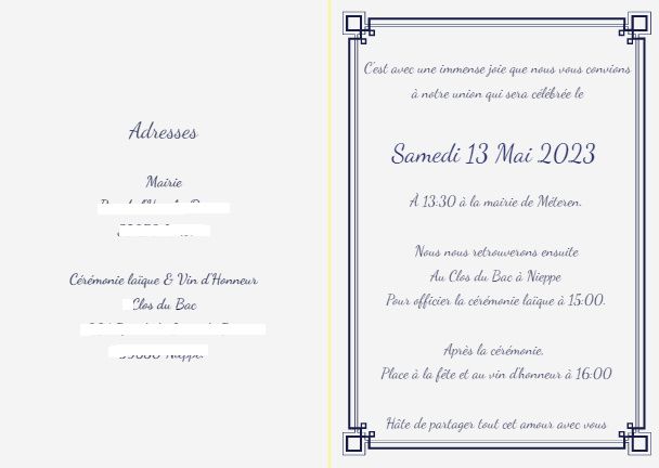 Voici le faire part intérieur et extérieur que je viens de commander