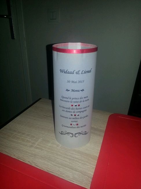 Hello, On est en plein dans la confection de nos menus photophore, qu'est ce que vous en pensez? On va en mettre 3/table autour du centre de table.
