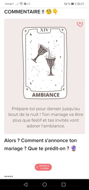 Coucou tout le monde 💜 Merci d'avoir participé jusqu'au bout ! Maintenant qu'on en sait un peu plus sur ton mariage, on va pouvoir tirer les cartes... FAIS UNE CAPTURE D'ÉCRAN DE CE GIF ET PUBLIE LA EN COMMENTAIRE !! 🧐👇 Alors ? Comment s'annonce ton...