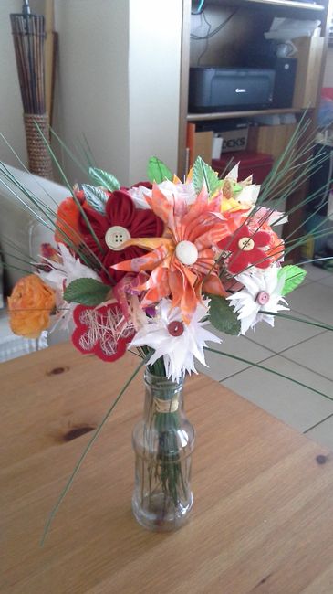 Bonjour a toutes, Ça y est' j'ai presque fini mon bouquet de mariée. Il ne me manque que les finitions. Qu en pensez vous ? Voyez vous des changements a apporter ?
