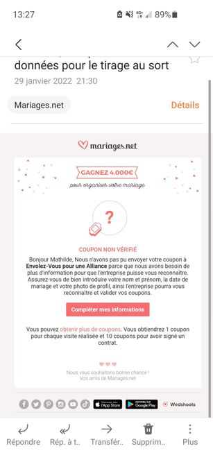 Bonjour à tous, Je ne parviens pas à comprendre... on me demande sans cesse par mail de compléter mon profil pour pouvoir participer au tirage au sort, mais je ne comprends pas ce qu'il manque dans mon profil, et donc comment participer au tirage au...