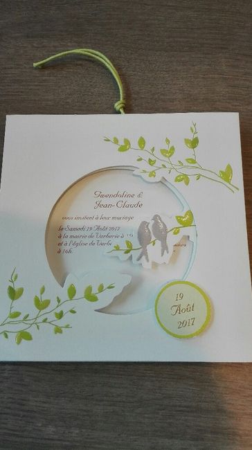 Coucou a toutes alors voilà il y a un peu plus de 2semaines maintenant nous avons reçu nos faire part. J'avais peur du résultat pis finalement non je ne me lasse pas de les regarder. Je les trouve magnifique et dans notre thème. Qu'en pensez vous? ...