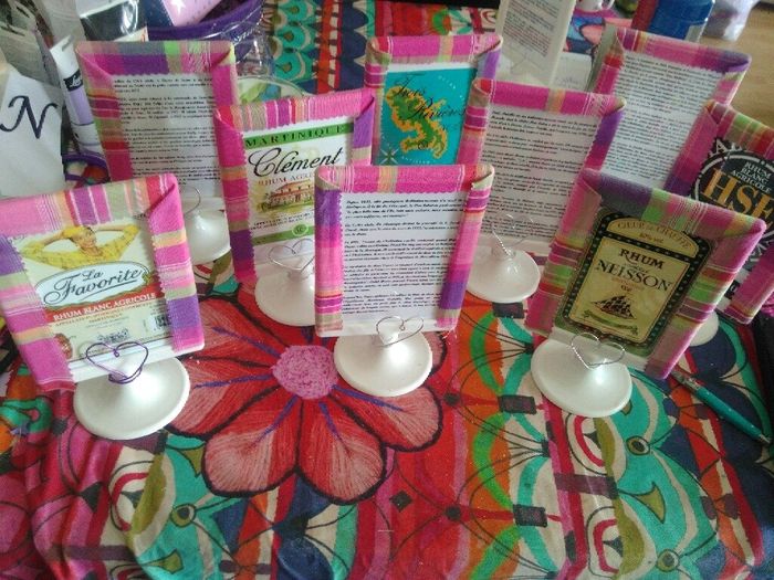Voilà les noms de tables sur les distillerie de Martinique avec au dos l'histoire de la distillerie