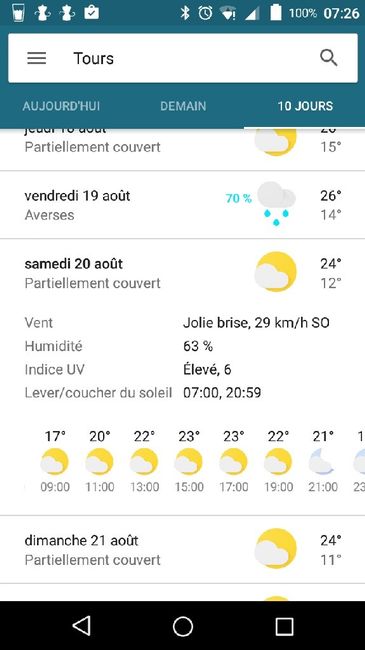 Et voilà il fera beau le 20. Hier ll pleuvait aujourd'hui ils mettent du beau temps et pas trop chaud. Idéal