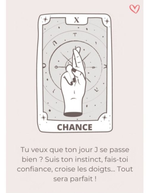 On souhaite voir ton compteur sur Mariages.net ❤️ Tu le partages en commentaire ? Let's gooooo 😎 *** Sur ce jeu on te lit ton avenir nuptial >> Jour de chance : les Admins tirent les cartes de ton mariage 🔮