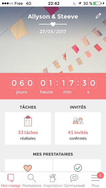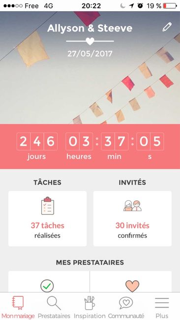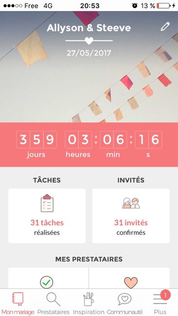 Enfin!Voilà le premier mot qui m'est venu ce matin en ouvrant l'application. J'ai enfin une excuse pour stresser ou pas! Lol Alors au niveau des préparatifs on a bien avancé. Salle ok, Dj ok, traiteur ok, photographe et videaste ok, fleuriste ok,...