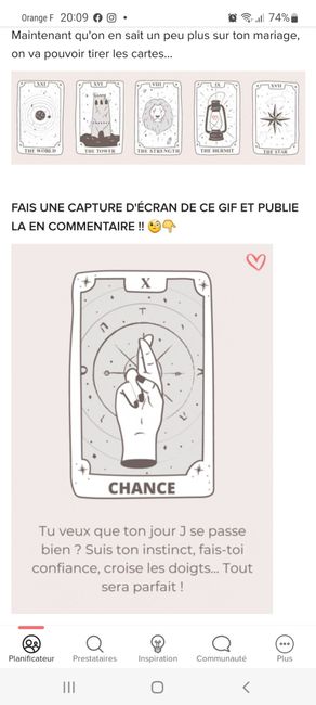 Coucou tout le monde 💜 Merci d'avoir participé jusqu'au bout ! Maintenant qu'on en sait un peu plus sur ton mariage, on va pouvoir tirer les cartes... FAIS UNE CAPTURE D'ÉCRAN DE CE GIF ET PUBLIE LA EN COMMENTAIRE !! 🧐👇 Alors ? Comment s'annonce ton...