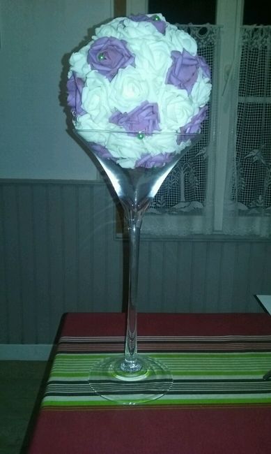 Coucou tout le monde !Je viens de finir ma première boule avec des roses en mousse (enfin celle que j'ai sélectionnée)Nos couleurs sont le violet et le vert (je ne veux pas que ce soit trop flashy donc il y a quelques roses violettes et le vert est...